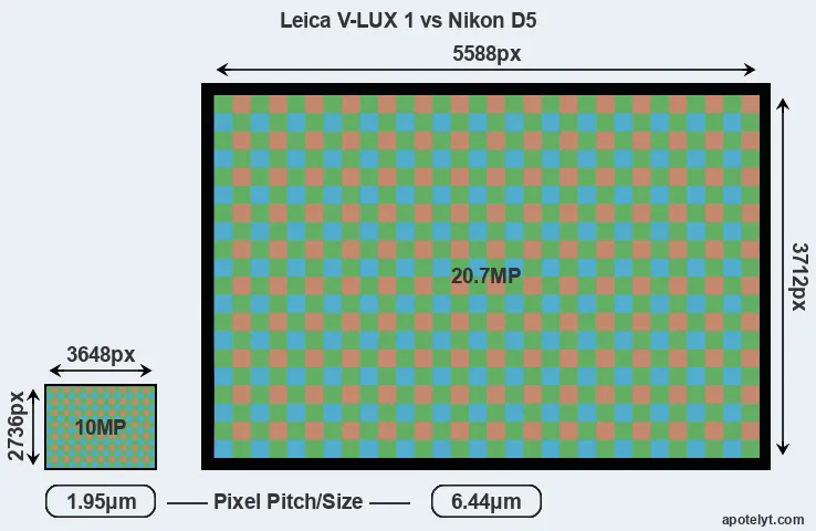 | Sensor Specs | Leica V-LUX 1 | Nikon D5 |