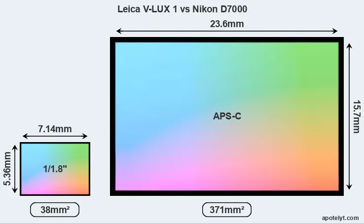 Of the two cameras under consideration, the Leica V-LUX 1 features a 1/1.8-inch sensor and the Nikon D7000 an APS-C sensor. The sensor area in the D7000 is 876 percent bigger. As a result of these sensor size differences, the cameras have a format factor of, respectively, 4.8 and 1.5. The sensor in the V-LUX 1 has a native 4:3 aspect ratio, while the one in the D7000 offers a 3:2 aspect.