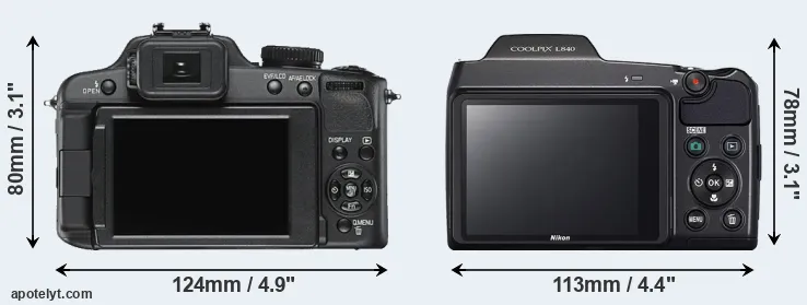 If the front view area (width x height) of the cameras is taken as an aggregate measure of their size, the Nikon L840 is notably smaller (11 percent) than the Leica V-LUX 2. However, the L840 is slightly heavier (3 percent) than the V-LUX 2. In this context, it is worth noting that neither the V-LUX 2 nor the L840 are weather-sealed.