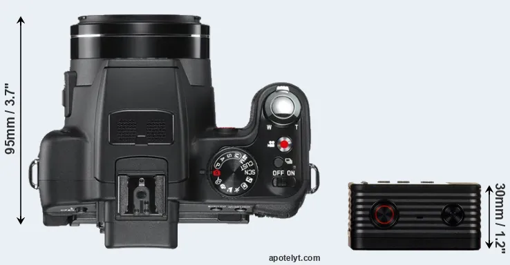 The side-by-side display below illustrates the physical size and weight of the Leica V-LUX 2 and the Sony RX0. The two cameras are presented according to their relative size. Three consecutive perspectives from the front, the top, and the back are available. All width, height and depth measures are rounded to the nearest millimeter.