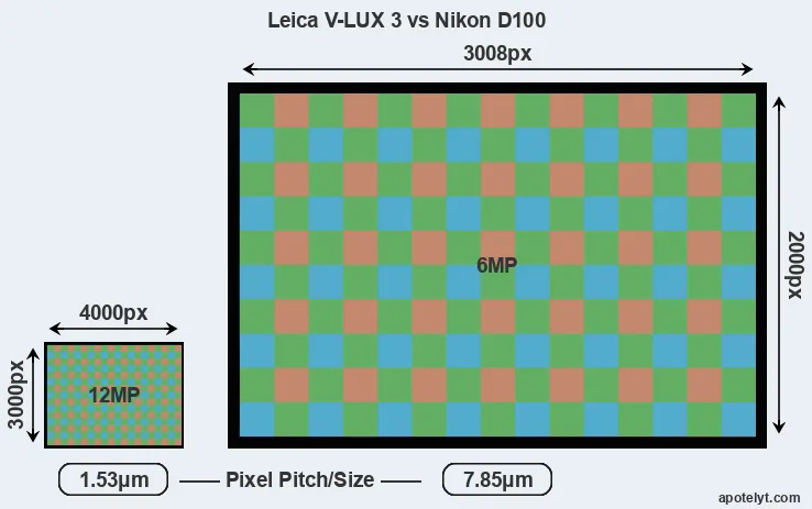| Sensor Specs | Leica V-LUX 3 | Nikon D100 |