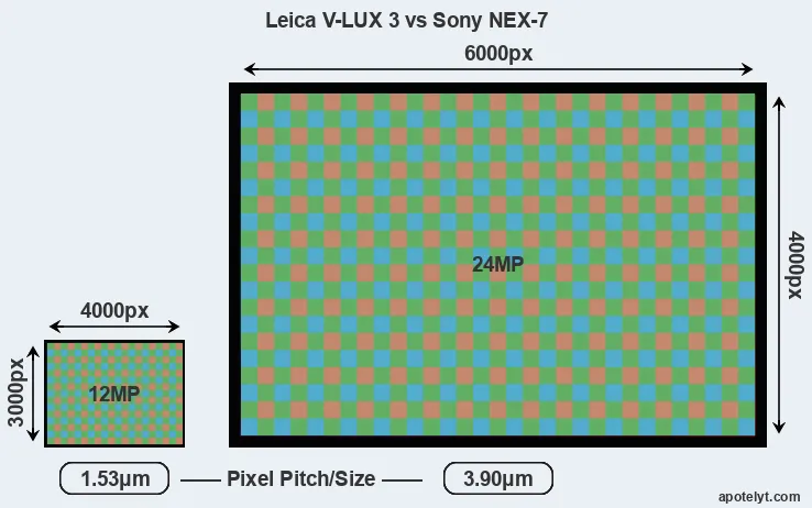 | Sensor Specs | Leica V-LUX 3 | Sony NEX-7 |