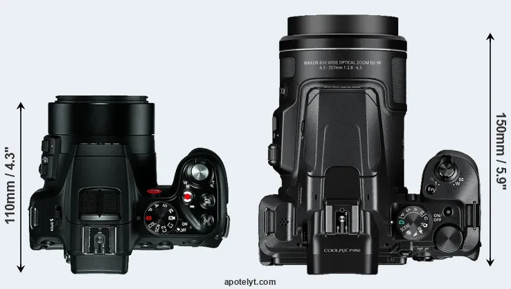 | 2. | Nikon P950 | 140 mm | 110 mm | 150 mm | 1005 g | 290 | n | Jan 2020 | US$ 799 | amazon.com | |