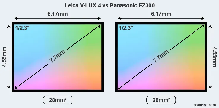 The Leica V-LUX 4 and the Panasonic Lumix DMC-FZ300 (labelled Panasonic FZ330 in some countries) are two digital cameras that were announced, respectively, in September 2012 and July 2015. Both the V-LUX 4 and the FZ300 are fixed lens compact cameras that are equipped with a 1/2.3-inch sensor. Both cameras offer a resolution of 12 megapixels.