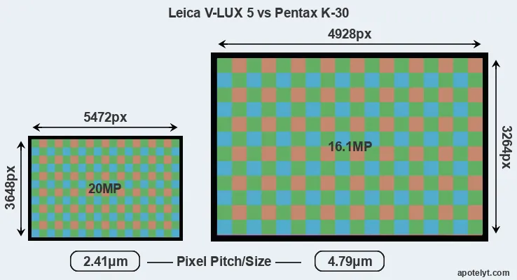 | Sensor Specs | Leica V-LUX 5 | Pentax K-30 |