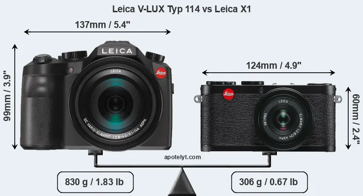 Size Leica V-LUX Typ 114 vs Leica X1