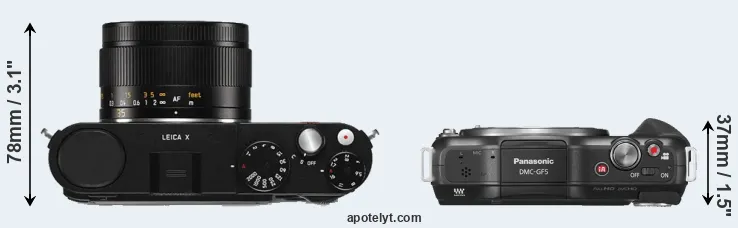 If the front view area (width x height) of the cameras is taken as an aggregate measure of their size, the Panasonic GF5 is notably smaller (25 percent) than the Leica X Typ 113. In this context, it is worth noting that neither the X Typ 113 nor the GF5 are weather-sealed.