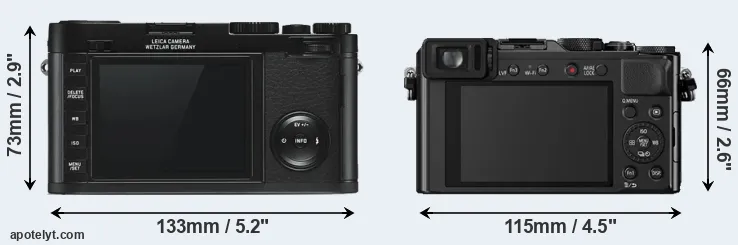 The side-by-side display below illustrates the physical size and weight of the Leica X Typ 113 and the Panasonic LX100. The two cameras are presented according to their relative size. Three consecutive perspectives from the front, the top, and the back are available. All width, height and depth dimensions are rounded to the nearest millimeter.