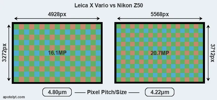 | Sensor Specs | Leica X Vario | Nikon Z50 |