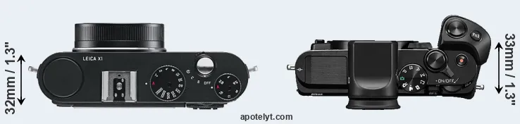 If the front view area (width x height) of the cameras is taken as an aggregate measure of their size, the Nikon 1 V3 is somewhat smaller (3 percent) than the Leica X1. In this context, it is worth noting that neither the X1 nor the V3 are weather-sealed.