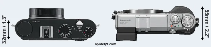 If the front view area (width x height) of the cameras is taken as an aggregate measure of their size, the Panasonic GX7 is notably larger (17 percent) than the Leica X1. In this context, it is worth noting that neither the X1 nor the GX7 are weather-sealed.
