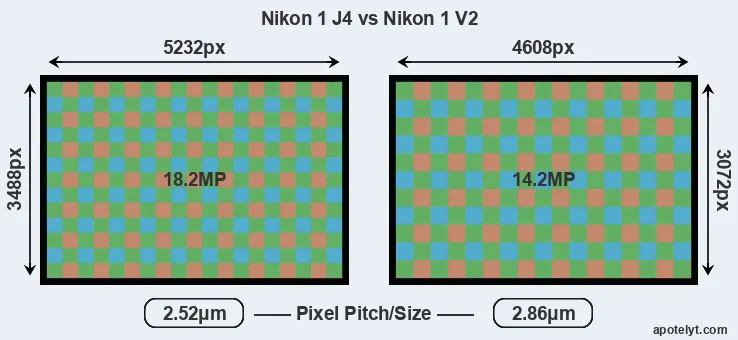 | Sensor Specs | Nikon 1 J4 | Nikon 1 V2 |