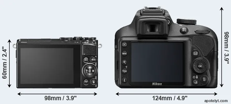 | Screen Specs | Nikon 1 J5 | Nikon D3400 |