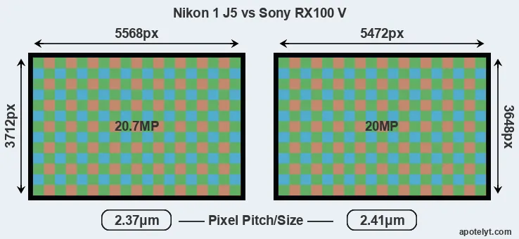 | Sensor Specs | Nikon 1 J5 | Sony RX100 V |