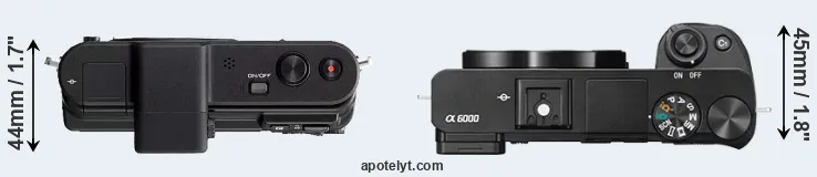 | 2. | Sony A6000 | 120 mm | 67 mm | 45 mm | 344 g | 360 | n | Feb 2014 | US$ 599 | ebay.com | |