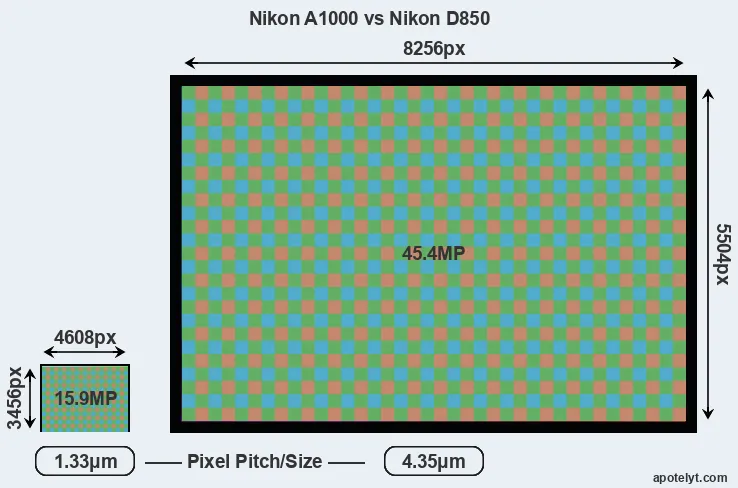 | Sensor Specs | Nikon A1000 | Nikon D850 |