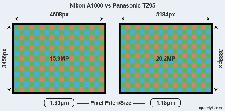 | Sensor Specs | Nikon A1000 | Panasonic TZ95 |