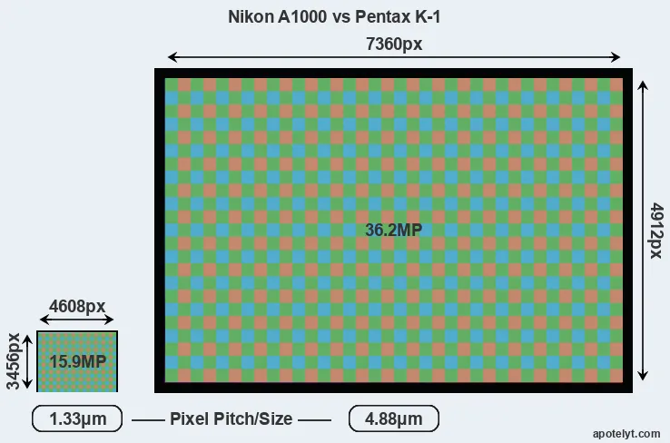 | Sensor Specs | Nikon A1000 | Pentax K-1 |