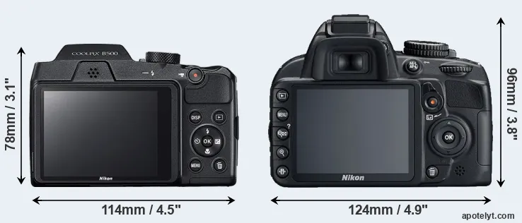 | Body Specs | Nikon B500 | Nikon D3100 |