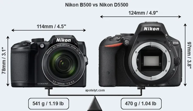 | Body Specs | Nikon B500 | Nikon D5500 |