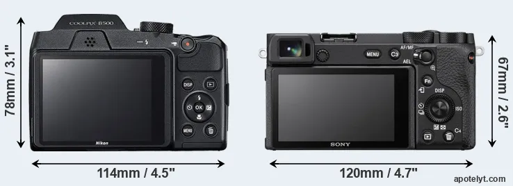 Going beyond this snapshot of core features and characteristics, what are the differences between the Nikon Coolpix B500 and the Sony Alpha A6600? Which one should you buy? Read on to find out how these two cameras compare with respect to their body size, their imaging sensors, their shooting features, their input-output connections, and their reception by expert reviewers.