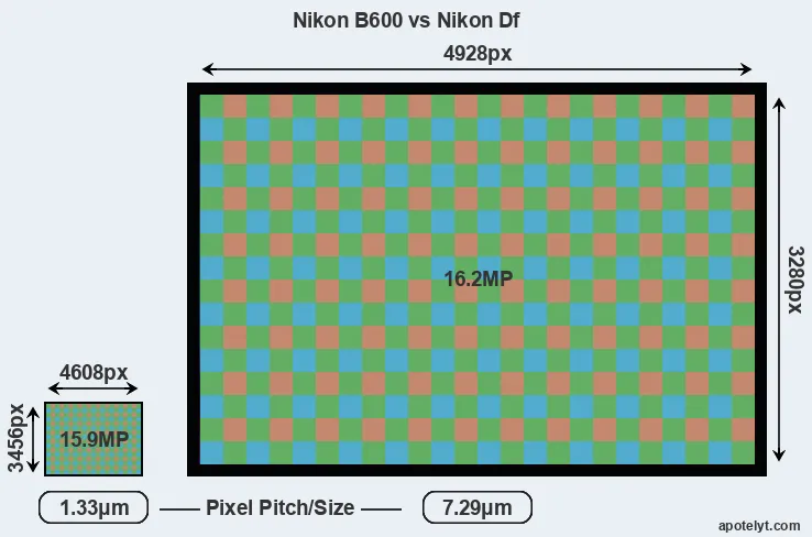| Sensor Specs | Nikon B600 | Nikon Df |