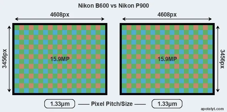 | Sensor Specs | Nikon B600 | Nikon P900 |