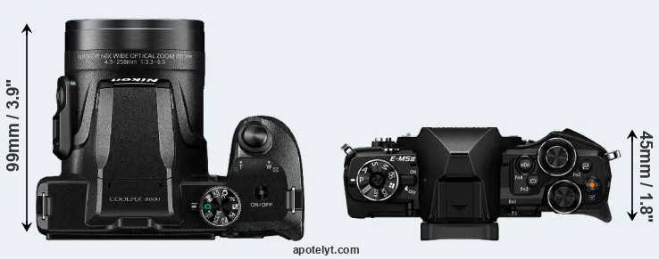 | Body Specs | Nikon B600 | Olympus E-M5 II |