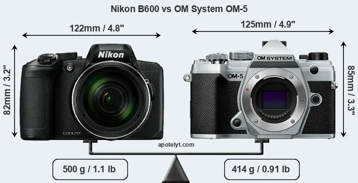 Going beyond this snapshot of core features and characteristics, what are the differences between the Nikon Coolpix B600 and the OM System OM-5? Which one should you buy? Read on to find out how these two cameras compare with respect to their body size, their imaging sensors, their shooting features, their input-output connections, and their reception by expert reviewers.