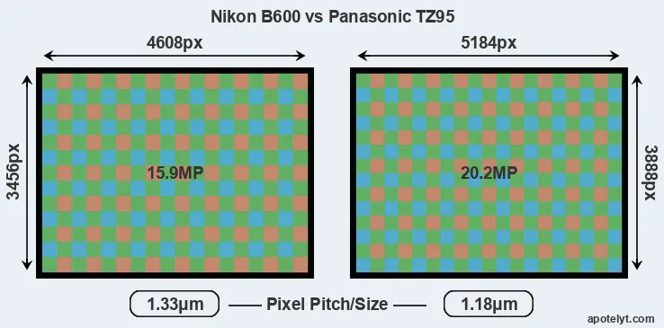 | Sensor Specs | Nikon B600 | Panasonic TZ95 |