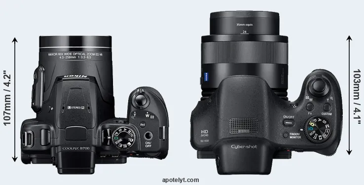 Going beyond this snapshot of core features and characteristics, what are the differences between the Nikon Coolpix B700 and the Sony Cyber-shot DSC-HX350? Which one should you buy? Read on to find out how these two cameras compare with respect to their body size, their imaging sensors, their shooting features, their input-output connections, and their reception by expert reviewers.