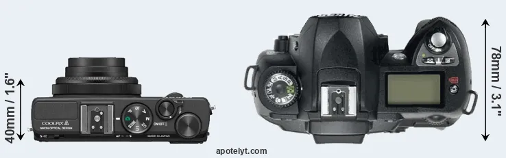 If the front view area (width x height) of the cameras is taken as an aggregate measure of their size, the Nikon D70 is considerably larger (119 percent) than the Nikon Coolpix A. In this context, it is worth noting that neither the Coolpix A nor the D70 are weather-sealed.