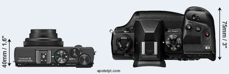 The above size and weight comparisons are to some extent incomplete and possibly misleading, as the Coolpix A has a lens built in, whereas the E-M1X is an interchangeable lens camera that requires a separate lens. Attaching the latter will add extra weight and bulk to the setup. You can compare the optics available for the E-M1X and their specifications in the Micro Four Thirds Lens Catalog.