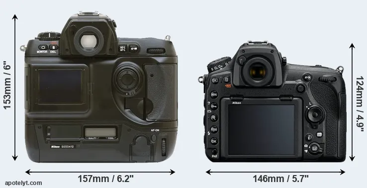 | 5. | Nikon D1H | 157 mm | 153 mm | 85 mm | 1100 g | 1200 | Y | Feb 2001 | US$ 4 499 | ebay.com | |