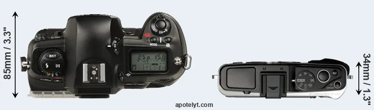 | 7. | Nikon D2Xs | 158 mm | 150 mm | 86 mm | 1252 g | 3800 | Y | Jun 2006 | US$ 4 699 | ebay.com | |