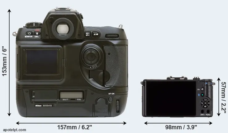 | 1. | Nikon D1 | 157 mm | 153 mm | 85 mm | 1100 g | .. | Y | Jun 1999 | US$ 5 499 | ebay.com | |