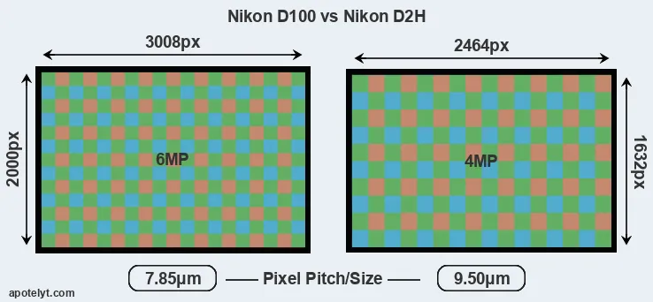 | Sensor Specs | Nikon D100 | Nikon D2H |