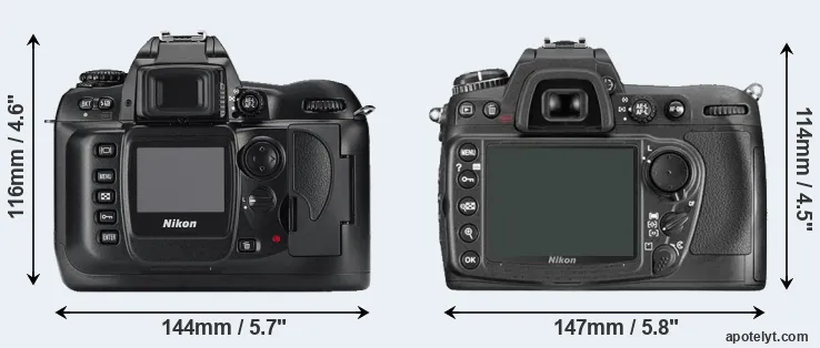 | 1. | Nikon D100 | 144 mm | 116 mm | 81 mm | 780 g | 370 | n | Feb 2002 | US$ 1 999 | ebay.com | |