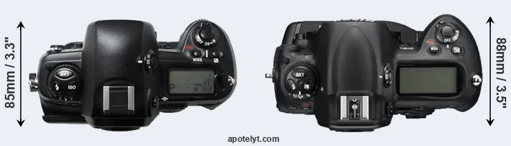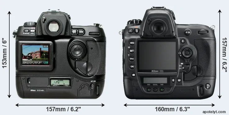 | 7. | Nikon D2Xs | 158 mm | 150 mm | 86 mm | 1252 g | 3800 | Y | Jun 2006 | US$ 4 699 | ebay.com | |