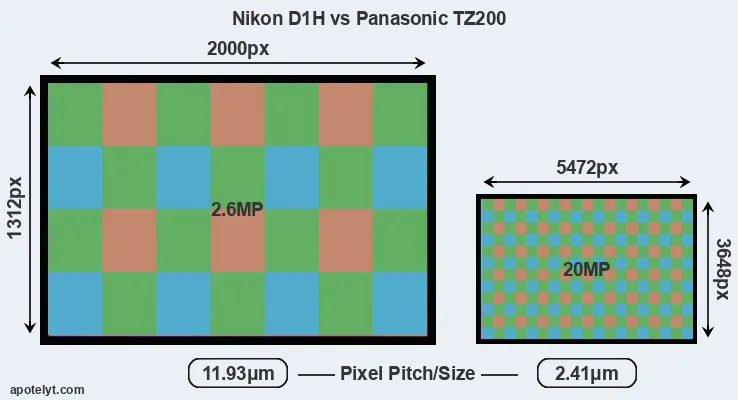 | Sensor Specs | Nikon D1H | Panasonic TZ200 |