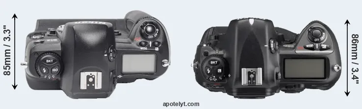 | 2. | Nikon D2Xs | 158 mm | 150 mm | 86 mm | 1252 g | 3800 | Y | Jun 2006 | US$ 4 699 | ebay.com | |