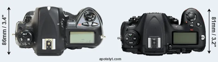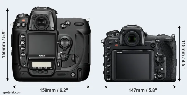 | 7. | Nikon D2Xs | 158 mm | 150 mm | 86 mm | 1252 g | 3800 | Y | Jun 2006 | US$ 4 699 | ebay.com | |