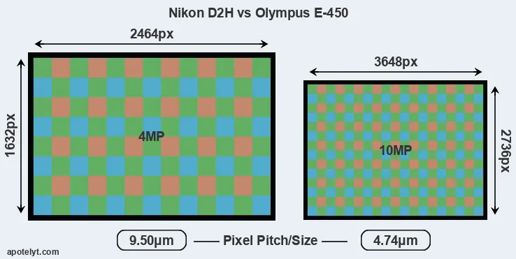 | Sensor Specs | Nikon D2H | Olympus E-450 |