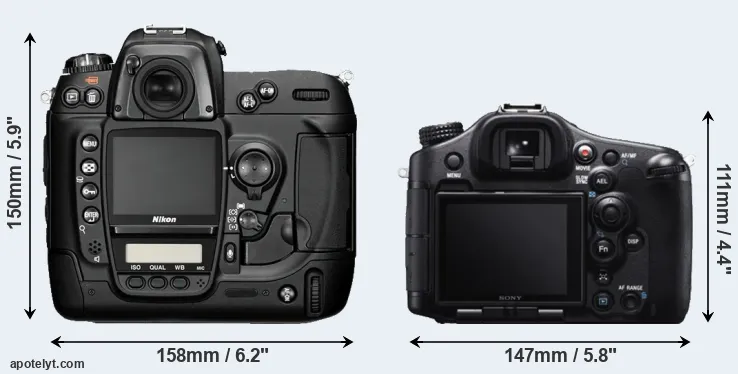 Going beyond this snapshot of core features and characteristics, what are the differences between the Nikon D2H and the Sony Alpha SLT-A99? Which one should you buy? Read on to find out how these two cameras compare with respect to their body size, their imaging sensors, their shooting features, their input-output connections, and their reception by expert reviewers.