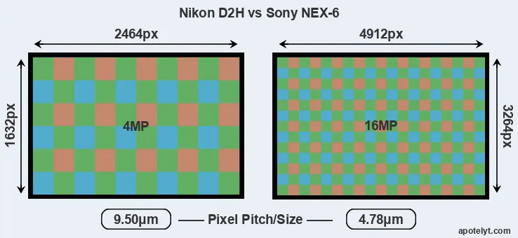 | Sensor Specs | Nikon D2H | Sony NEX-6 |