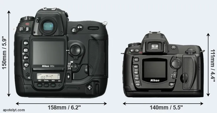 Going beyond this snapshot of core features and characteristics, what are the differences between the Nikon D2X and the Nikon D70? Which one should you buy? Read on to find out how these two cameras compare with respect to their body size, their imaging sensors, their shooting features, their input-output connections, and their reception by expert reviewers.