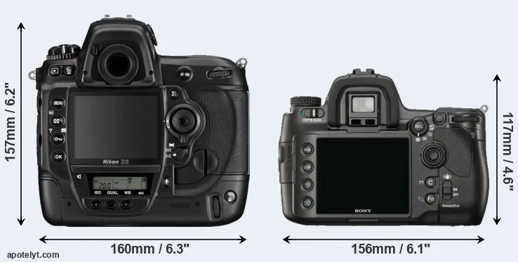 | 2. | Sony A900 | 156 mm | 117 mm | 82 mm | 895 g | 880 | Y | Sep 2008 | US$ 2 999 | ebay.com | |