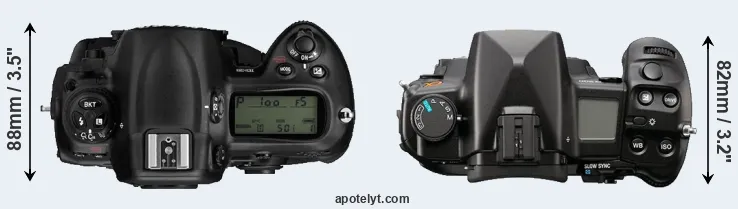 | 6. | Nikon D2Xs | 158 mm | 150 mm | 86 mm | 1252 g | 3800 | Y | Jun 2006 | US$ 4 699 | ebay.com | |