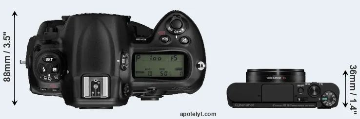 If the front view area (width x height) of the cameras is taken as an aggregate measure of their size, the Sony WX800 is considerably smaller (76 percent) than the Nikon D3. It is worth mentioning in this context that the D3 is splash and dust resistant, while the WX800 does not feature any corresponding weather-sealing.