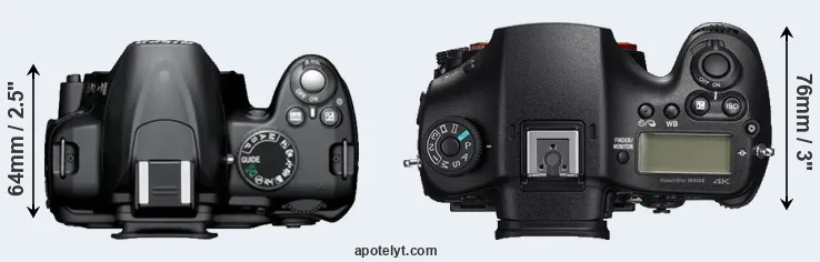 | 2. | Sony A99 II | 143 mm | 104 mm | 76 mm | 849 g | 490 | Y | Sep 2016 | US$ 3 199 | ebay.com | |